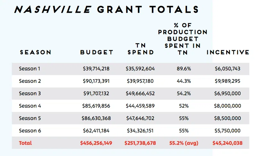 As the sixth and final season of Nashville comes to a close on July 26, research organization the Beacon Center has released a report on the “ineffectiveness of film incentives in Tennessee,” citing that Nashville cost Tennessee taxpayers more than $45 million.