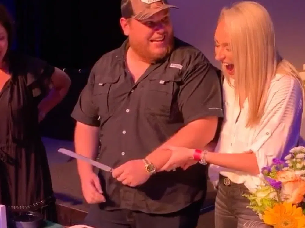Watch Luke Combs & His FiancĂ©e Get Some “Practice” Cutting Their Wedding Cake